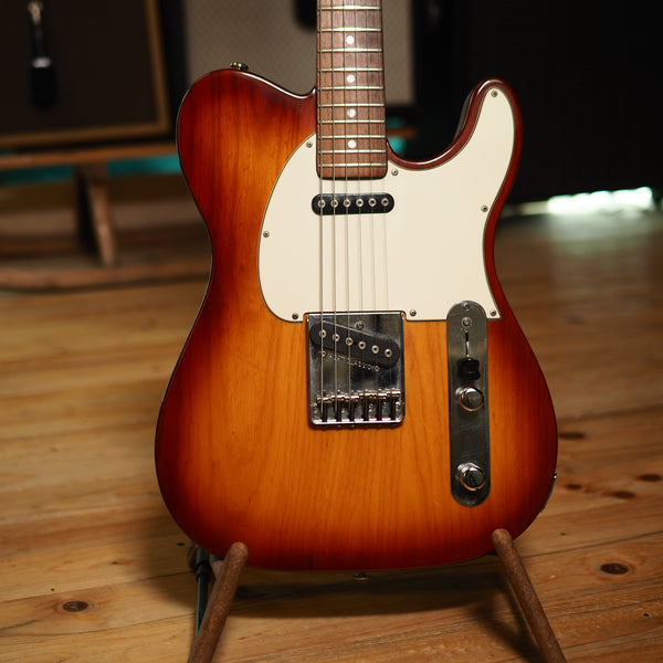 G&L war die letzte Wirkungsstätte von Leo Fender – hier entstanden die finalen Weiterentwicklungen seiner klassischen Designs. Die ASAT Classic nimmt das Telecaster-Rezept und verfeinert es in Richtung mehr Komfort und Vielseitigkeit. Das Herzstück sind natürlich die MFD-Pickups, die in jede Richtung mehr liefern als herkömmliche Single Coils (und klassische Single-Coil-Sounds sind trotzdem problemlos abrufbar, wenn man Volume und Tone ein wenig zurücknimmt). Die Verarbeitungsqualität bei G&L war immer hervorragend, doch die ASATs mit den Dreifach-Halsverschraubungen der 90er gelten vielen als die besten Instrumente, die die Firma je gebaut hat.