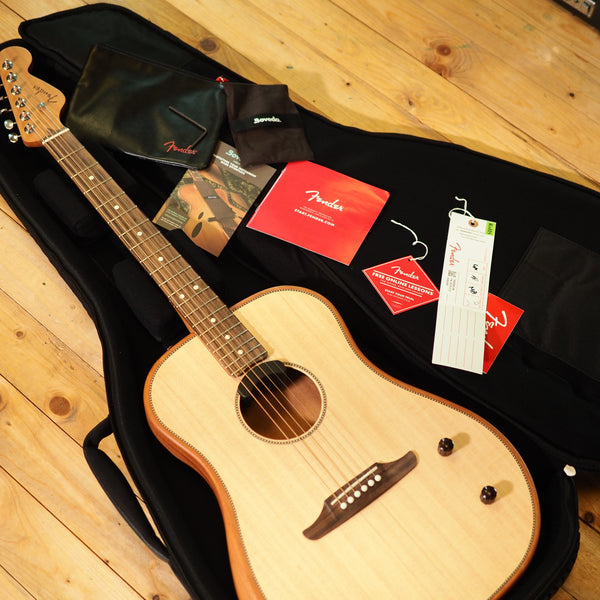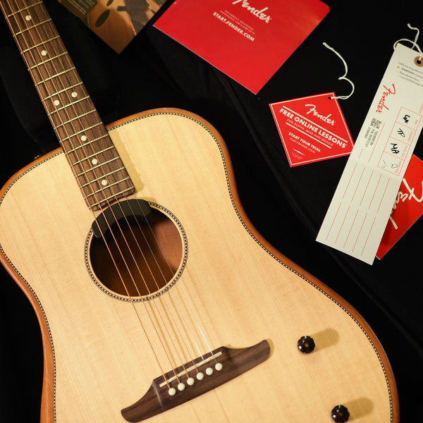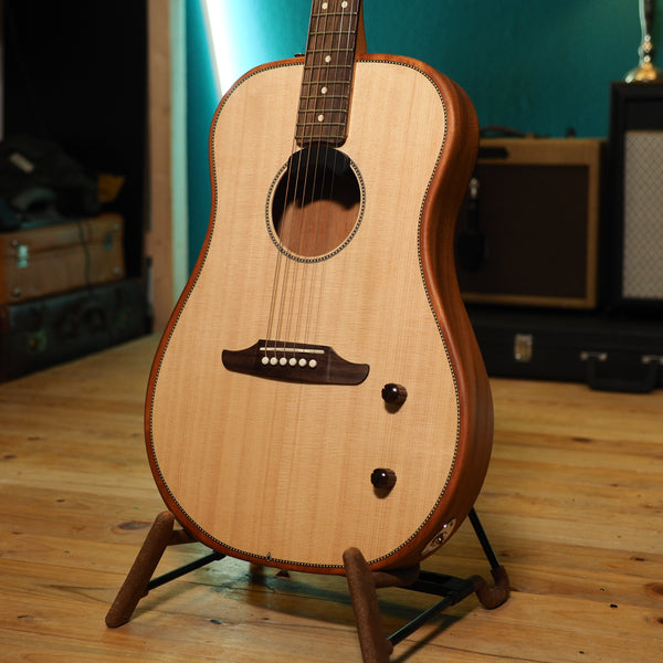 Fender's new solution to people wanting a better amplified acoustic tone is this Highway Dreadnought. With a compact, chambered mahogany body and a solid sitka spruce top, it gives you a lovely stage sound without feedback issues. The amplification is taken care of by a Fishman Fluence Core pickup and preamp and the neck is comfy like an electric guitar. This Highway Dreadnought is also a rather beautiful instrument, and the open pore finishes feel wonderful in the hand.