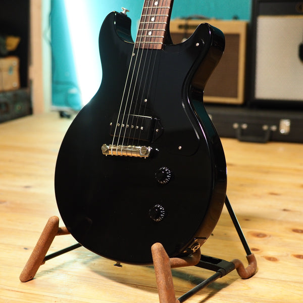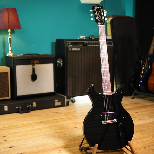 So here's what you get from this 2025 Double Cut Junior: a mahogany body and mahogany neck, rosewood fingerboard, a great sounding dog ear P90 and a wraparound bridge. Everything you need for every style of music - this is not just a punk guitar. As you'd expect from a good Gibson, it's lively and resonant and the slim taper neck profile feels wonderful.