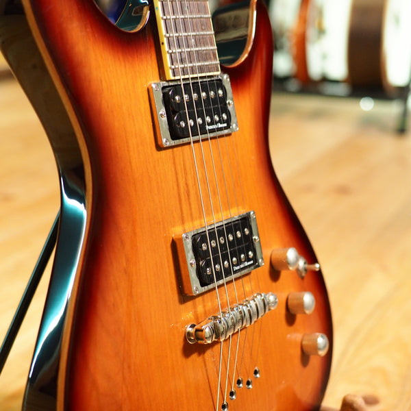 A cool Korean made Ibanez, with a mahogany body, maple cap and set mahogany neck. Of course, a recipe like that also has to include a rosewood fingerboard and a pair of humbuckers. The SZ320 comes with a set of Seymour Duncan designed Duncan / Ibanez pickups - a warm Alnico humbucker in the neck and a hot ceramic one in the bridge.