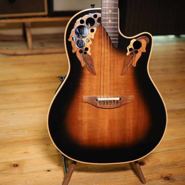 This top of the line Elite has been cleaned, checked and set up and is ready for the stage - the natural home of any Ovation, where their great tone and superb feedback resistance make them very easy to live with.
